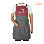أضف لمسة من الاحترافية لفريق عملك مع هذا المريول العصري المصنوع بجودة عالية وتصميم عملي. يتميز بمزيج أنيق من القماش الرمادي والجلد العنابي، مما يجعله الخيار الأمثل لأصحاب المقاهي، المخابز، والمطاعم.